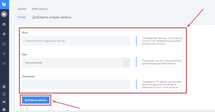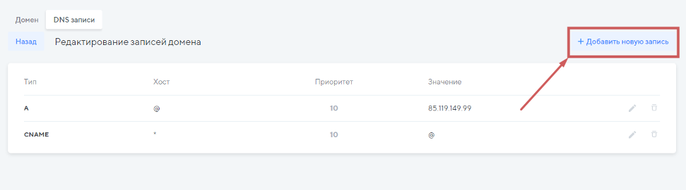 Далее, чтобы подтвердить владение доменом, нужно будет добавить записи для домена.