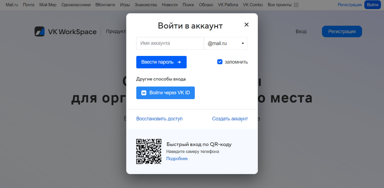 1. Регистрируемся на mail для бизнеса