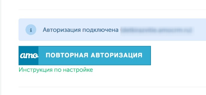 3. Появится кнопка «Авторизоваться в AmoCrm », кликнем по ней.
