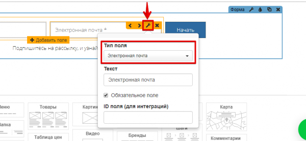 Определить какое поле необходимо выбрать можно в настройках поля по его типу: