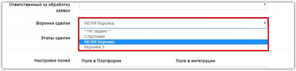 Воронка успешно добавлена и будет отображаться в выпадающем списке “Воронки сделки ”