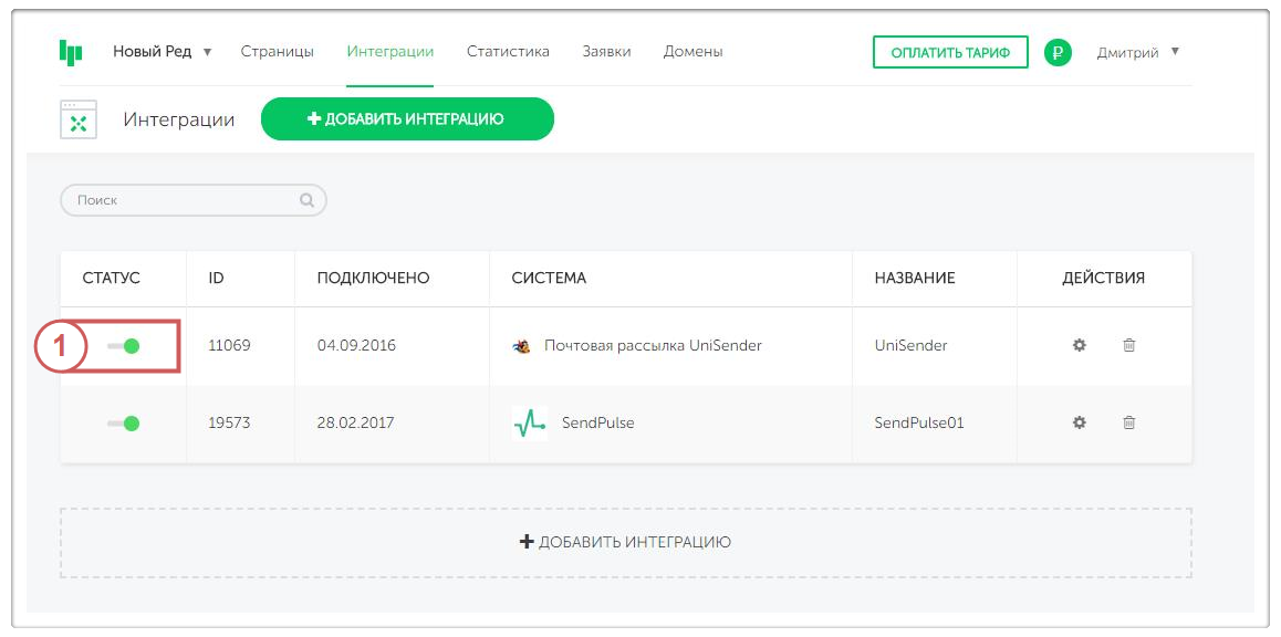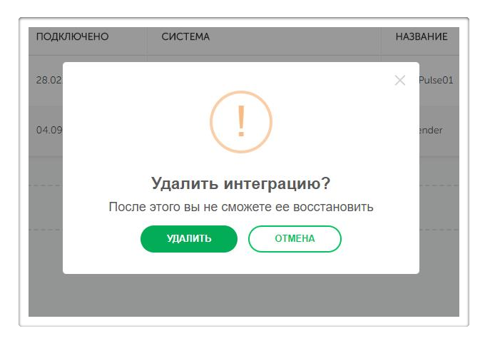 Важно! Интеграции удаляются безвозвратно и не подлежат восстановлению.