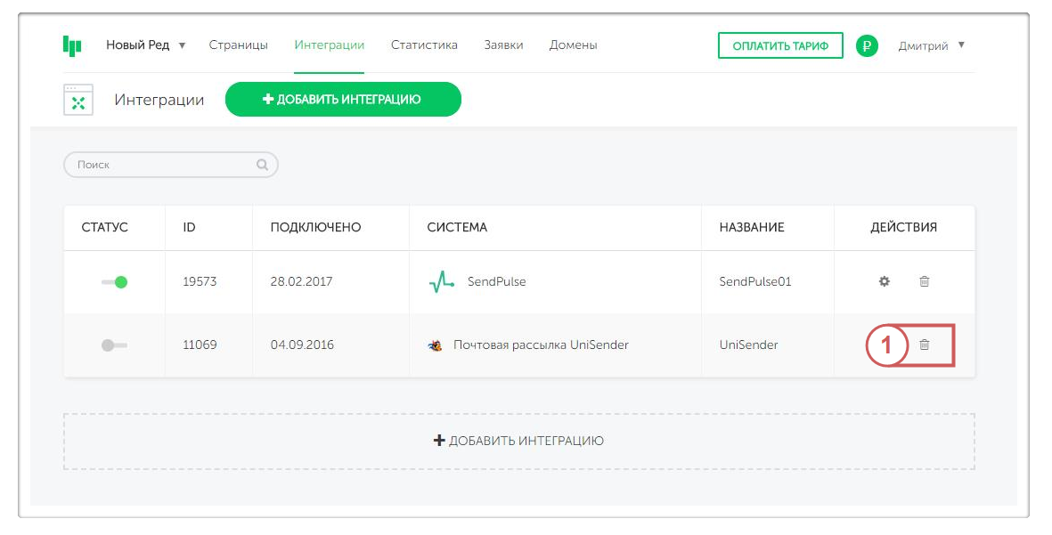 Шаг 2. Нажмём кнопку “Удалить” – она доступна только при выключенной интеграции.