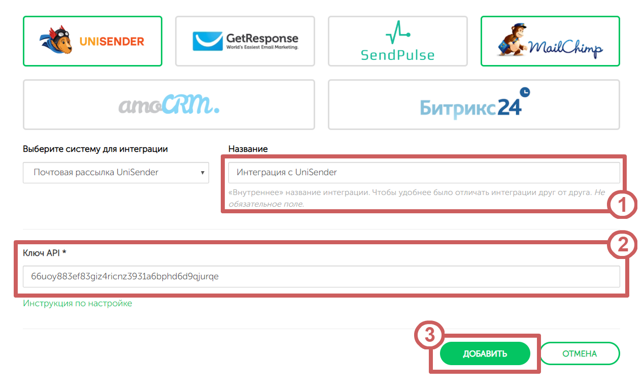 1. Настраиваем интеграцию с UniSender