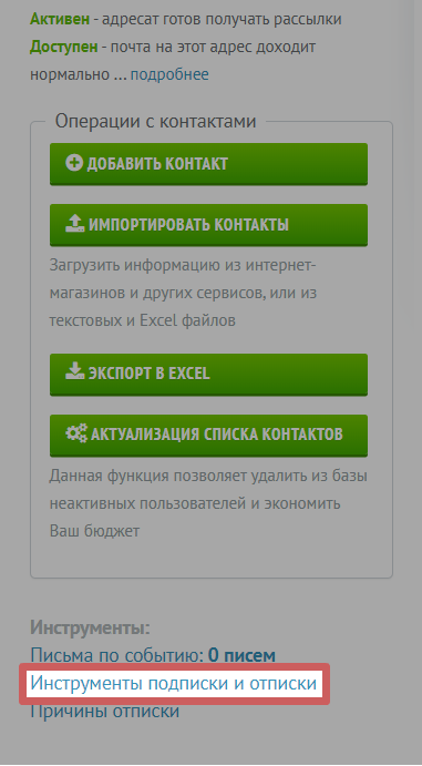 И выполняем все необходимые настройки в разделе «Инструменты подписки и отписки »