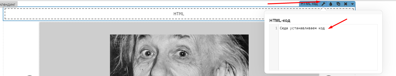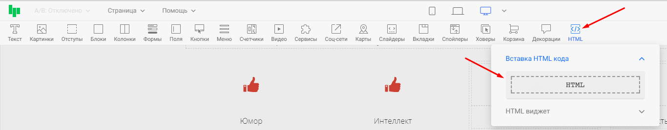 Устанавливаем код под товаром или в любом другом удобном месте на странице с помощью виджета "HTML код" в редакторе: