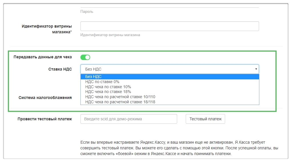 4.Как включить передачу данных в Яндекс.Кассе?