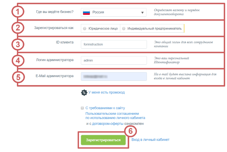 ❗ Важно: На данный момент регистрация на сервисе доступна только для ИП и юридических лиц.