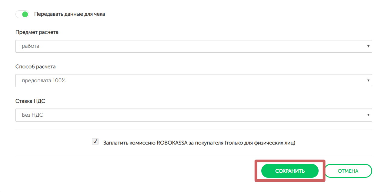«Заплатить комиссию ROBOKASSA за покупателя (только для физических лиц)»