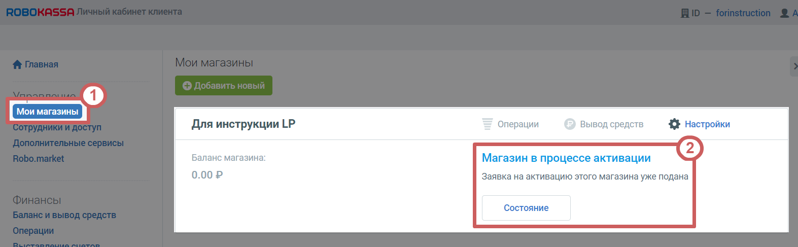 ❗Важно: оплата на сайте заработает только после успешной активации магазина. Чтобы проверить, одобрили ли ваш запрос на активацию - зайдите в личный кабинет Робокассы, в раздел «Мои магазины ». В блоке созданного магазина будет отображаться статус активации и кнопка «Состояние ». По нажатию на эту кнопку, вы сможете обратиться в тех. поддержку Робокассы и посмотреть их ответ на ваш запрос активации, если какие-то условия для успешной активации не были соблюдены.