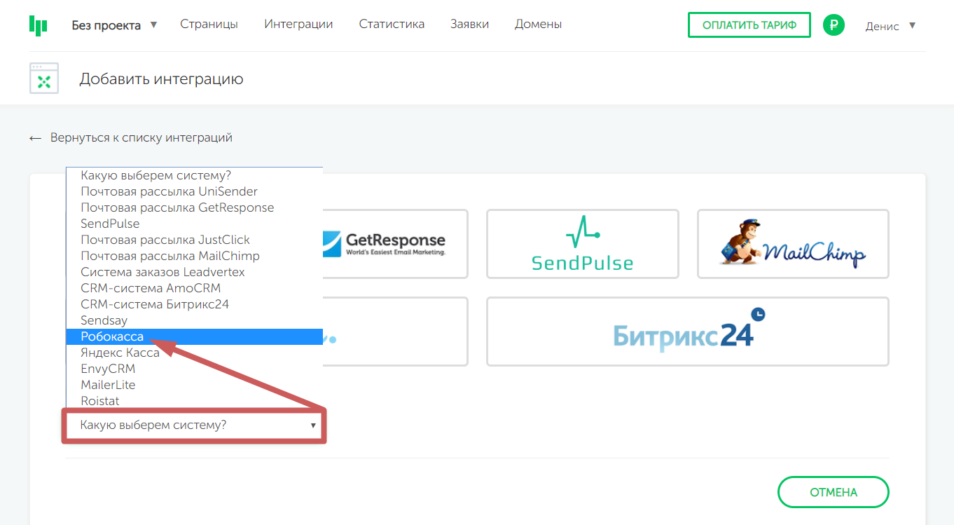 И при добавлении интеграции выберите «Робокасса »
