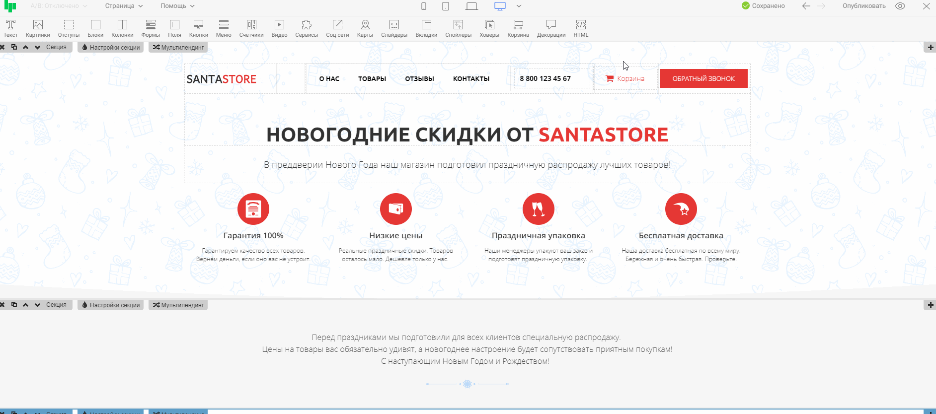 Установленный код будет виден только на опубликованной странице.
