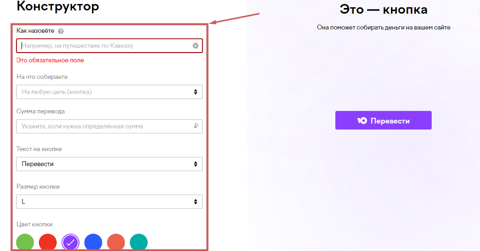Шаг 2. Зададим настройки для кнопки. После заполнения полей нажмите кнопку «Создать кнопку »:
