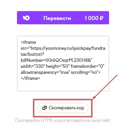 Шаг 3. Копируем полученный код