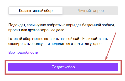 Зайдите на сервис и кликните кнопку «Создать сбор »: