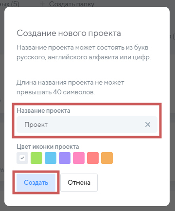 ΠΠ΅ΡΠ΅Π΄ Π²Π°ΠΌΠΈ ΠΎΡΠΊΡΠΎΠ΅ΡΡΡ ΠΎΠΊΠ½ΠΎ ΡΠΎΠ·Π΄Π°Π½ΠΈΡ ΠΏΡΠΎΠ΅ΠΊΡΠ°, Π³Π΄Π΅ Π½ΡΠΆΠ½ΠΎ ΡΠΊΠ°Π·Π°ΡΡ Π½Π°Π·Π²Π°Π½ΠΈΠ΅ Π²Π°ΡΠ΅Π³ΠΎ Π±ΡΠ΄ΡΡΠ΅Π³ΠΎ ΠΏΡΠΎΠ΅ΠΊΡΠ° ΠΈ Π½Π°ΠΆΠ°ΡΡ ΠΊΠ½ΠΎΠΏΠΊΡ Β«Π‘ΠΎΠ·Π΄Π°ΡΡ Β».