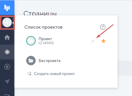 Π§ΡΠΎΠ±Ρ ΠΏΠ΅ΡΠ΅ΠΈΠΌΠ΅Π½ΠΎΠ²Π°ΡΡ ΠΏΡΠΎΠ΅ΠΊΡ ΠΈΠ»ΠΈ ΡΠ΄Π°Π»ΠΈΡΡ, Π½Π΅ΠΎΠ±Ρ ΠΎΠ΄ΠΈΠΌΠΎ ΠΎΡΠΊΡΡΡΡ ΡΠΏΠΈΡΠΎΠΊ ΠΏΡΠΎΠ΅ΠΊΡΠΎΠ² ΠΈ Π½Π°ΠΆΠ°ΡΡ Π½Π° Π·Π½Π°ΡΠΎΠΊ ΡΠ΅Π΄Π°ΠΊΡΠΈΡΠΎΠ²Π°Π½ΠΈΡ Π²ΠΎΠ·Π»Π΅ Π½ΡΠΆΠ½ΠΎΠ³ΠΎ ΠΏΡΠΎΠ΅ΠΊΡΠ° (ΠΈΠΊΠΎΠ½ΠΊΠ° ΠΊΠ°ΡΠ°Π½Π΄Π°ΡΠ°).