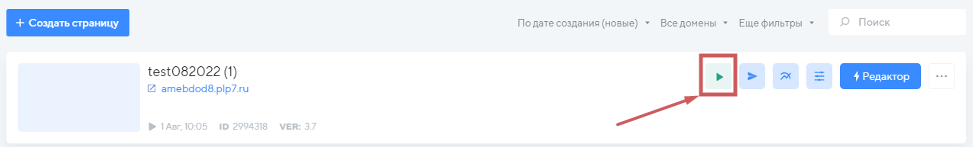 Теперь наша страница имеет статус «Запущено ».