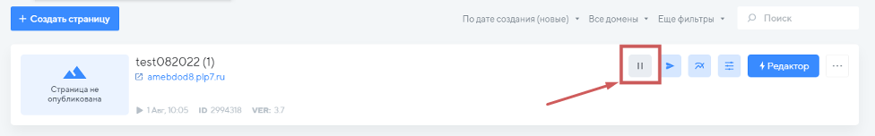 Тогда в списке страниц будут видны Активные и Остановленные страницы: