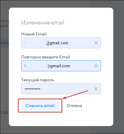 После нажатия на кнопку ваша почта будет изменена.