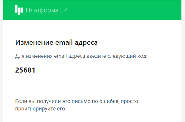 Шаг 3. После сохранения новой почты, вам будет выслано письмо с кодом подтверждения на действующую почту. У вас будет свой код.