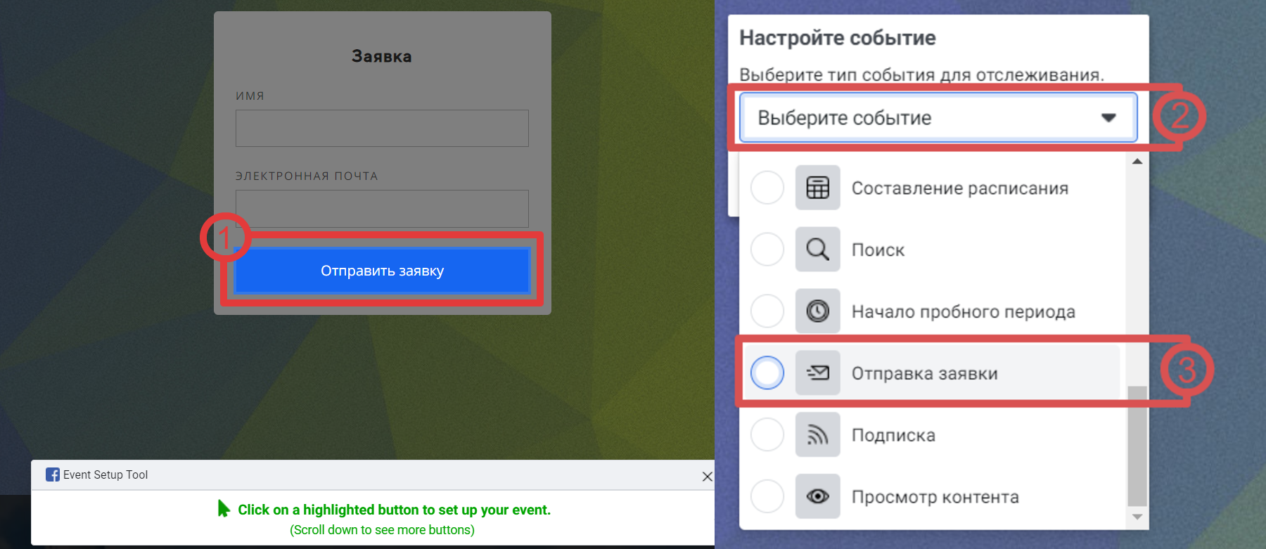 3. Можно сделать так, чтобы код срабатывал одновременно с нажатием на кнопку «Отправить заявку»