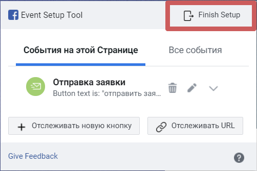 Чтобы сохранить события и закончить их настройку - нажмите на кнопку «Finish Setup» на панели управления.
