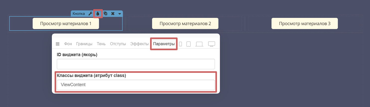 Для кнопок, которые будут отвечать за просмотр материала, следует указать класс. По нажатию сработает код. Например, в коде выше, классом является ViewContent