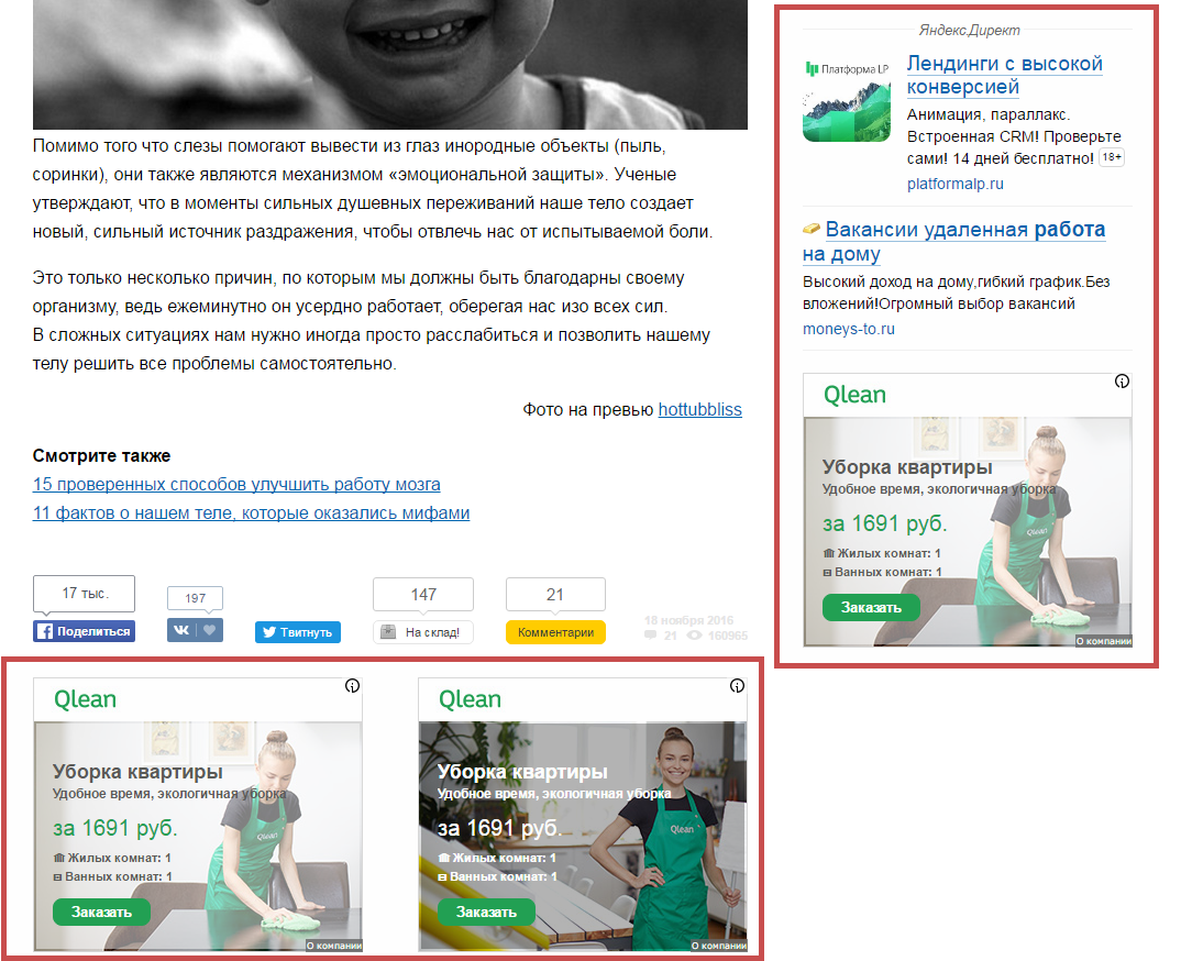 Если пользователь недавно искал удалённую работу или сервис уборки, то зайдя на один из сайтов, может обнаружить следующее: