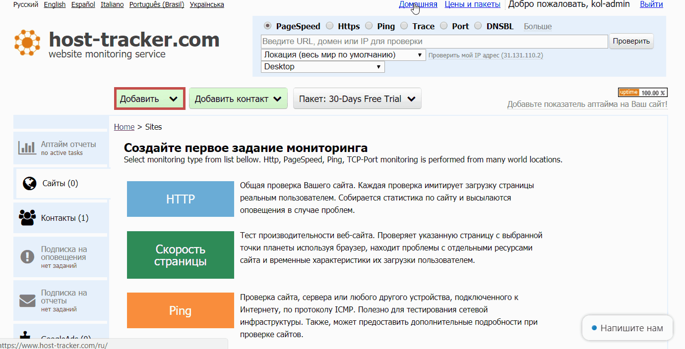 На Host-Tracker**** доступен 30-дневный бесплатный период со всей доступной функциональностью после регистрации. Подробнее о всех тарифах можно узнать на официальном сайте.