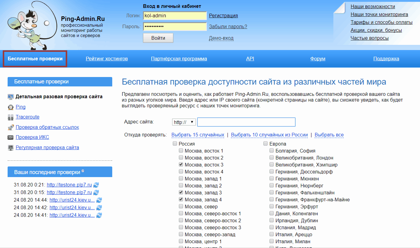 Проверить доступность сайта можно как вручную на своем устройстве, так и с помощью онлайн-сервисов. Последние позволяют отследить работу сайта с разных точек одной или несколько стран. Рассмотрим несколько примеров таких сервисов.