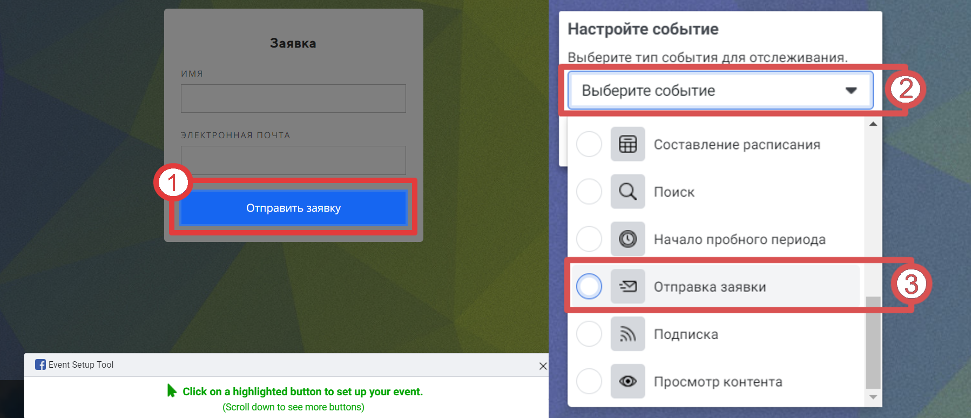 Разбираемся на примере стандартных событий Facebook, например: Просмотр контента, Добавление в корзину, Лид и другие. Полный список событий в Справочном центре Facebook.