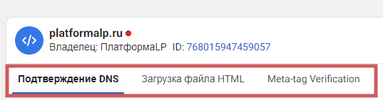 Перейдите во вкладку «Подтверждение DNS » и скопируйте текстовую запись DNS: