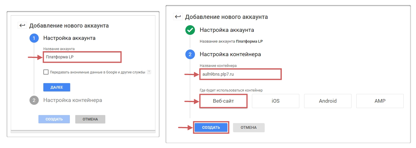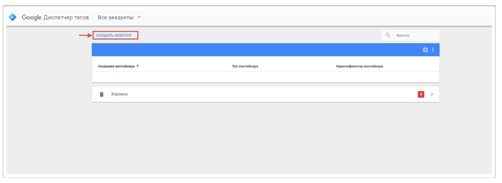 Шаг 2. Нажимаем “Создать аккаунт” внутри сервиса Google Tag Manager.