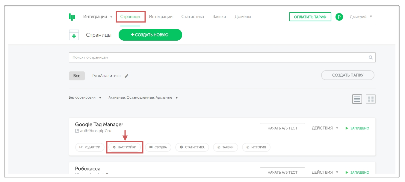 Шаг 6. Переходим в настройки нужной страницы.