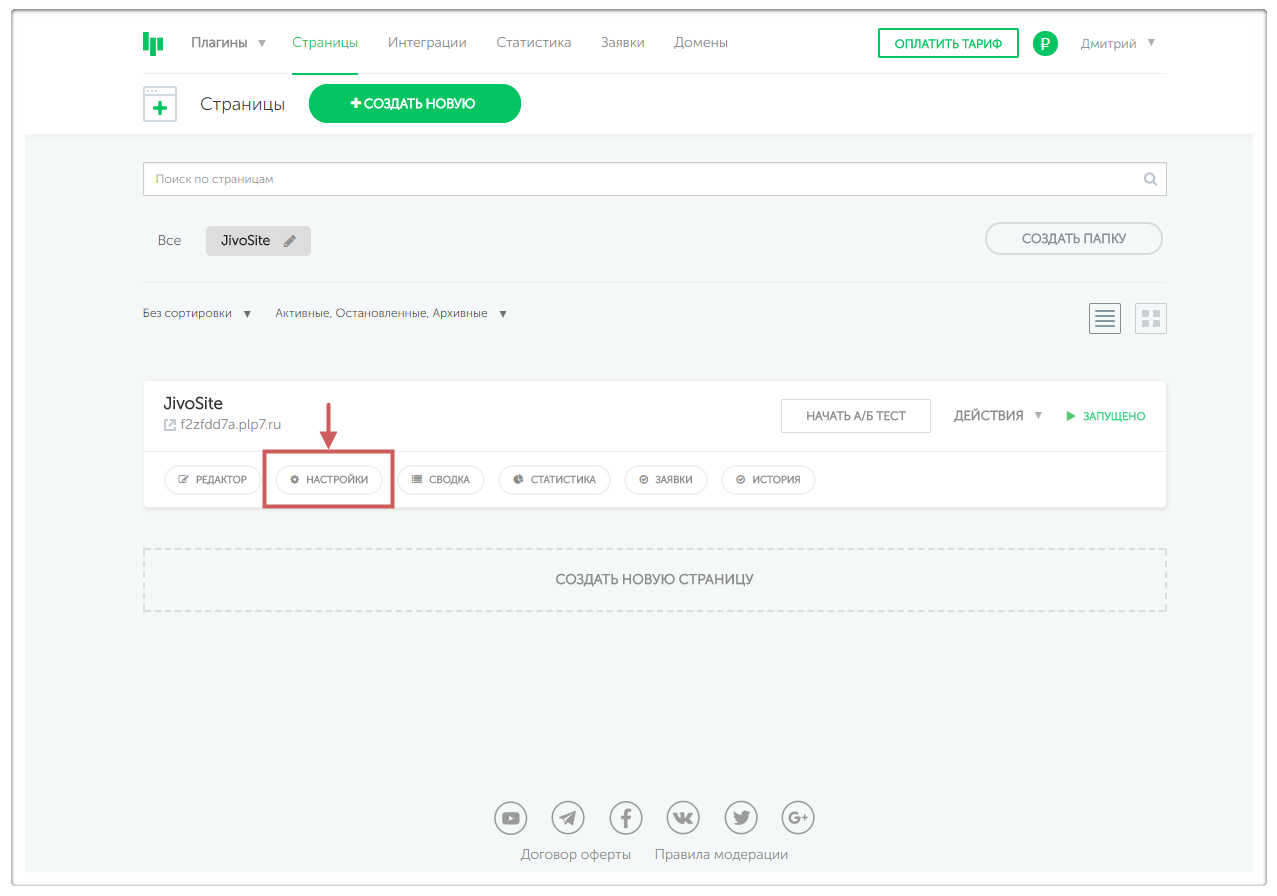 После нажатия кнопки«Сохранить» плагин будет создан и код JivoSite добавится на страницу.