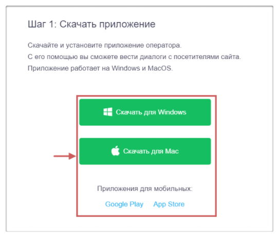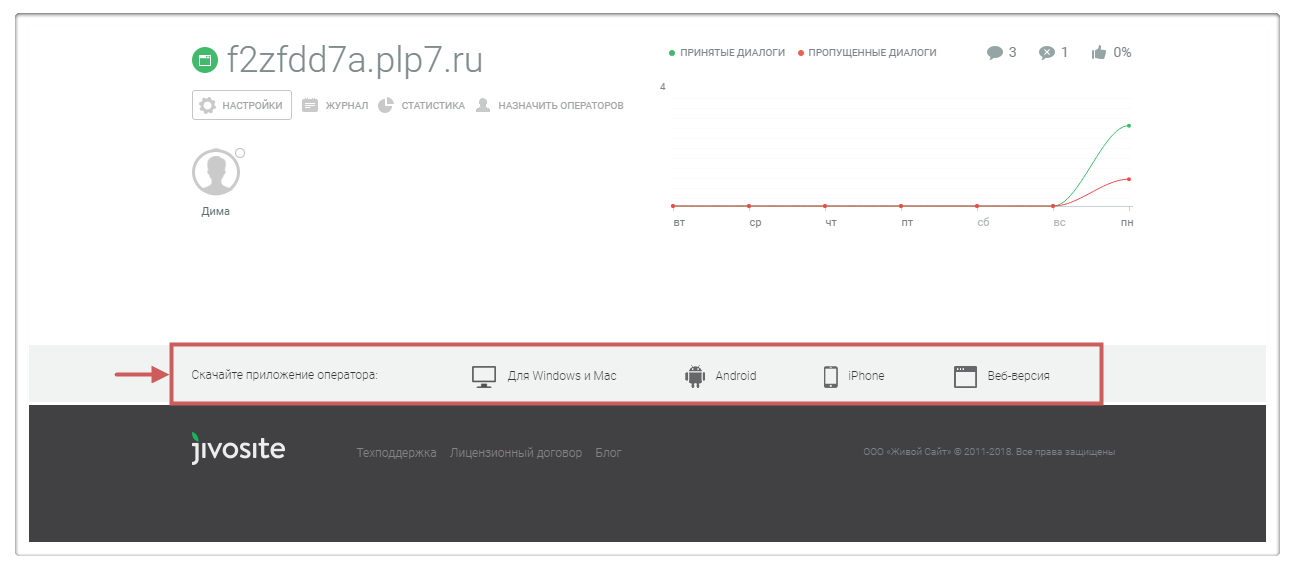 Для приёма сообщений необходимо установить одно из приложений оператора JivoSite (его можно скачать из письма на почте).
