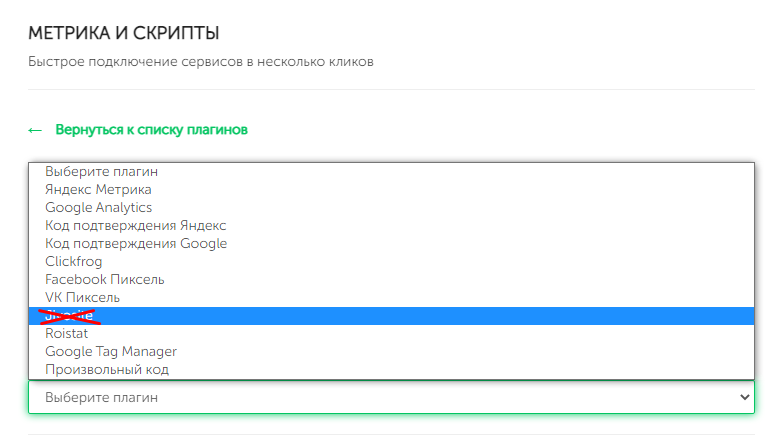 Шаг 3. Вернёмся в кабинет ПлатформыLP и откроем настройки нужной страницы - раздел "Метрика и Скрипты"