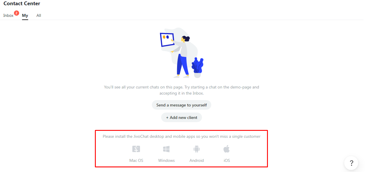 Для приёма сообщений необходимо установить одно из приложений оператора JivoSite (его можно скачать из письма на почте).