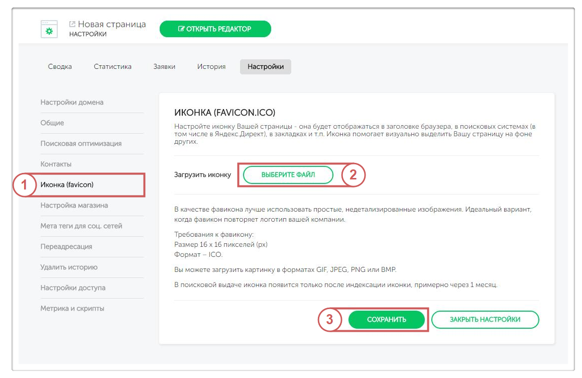 Если фавикон не отображается или выглядит не так, как надо – значит, ошиблись с размером и/или форматом, загрузите подходящий по требованиям вариант.