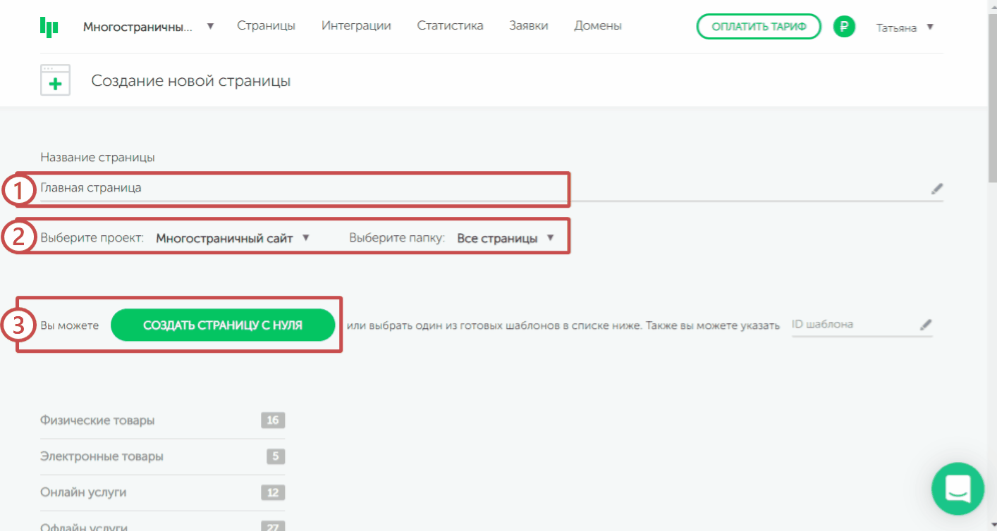 Шаг 2. Указываем понятное название, которое будет видно только вам в личном кабинете. Назовем её «Главная страница ».