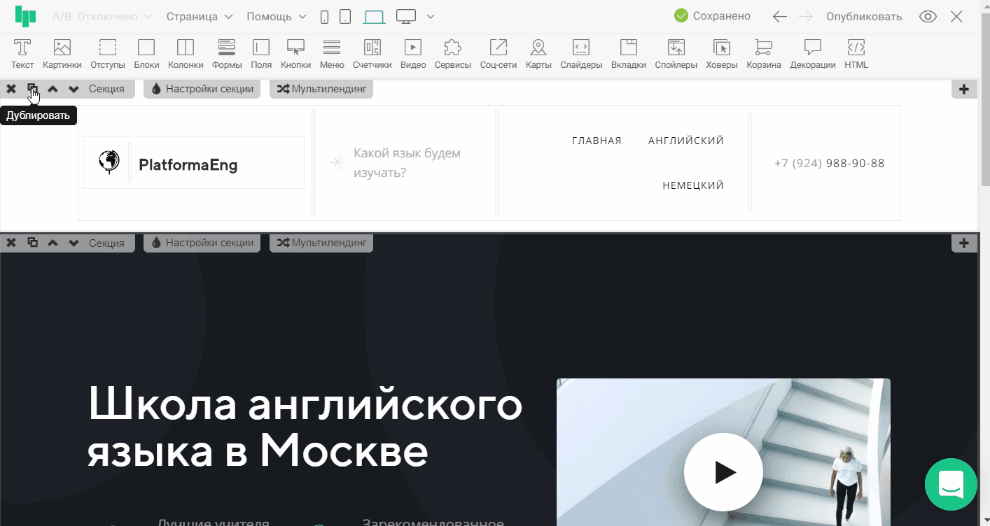 Об этом подробнее в статье «Как скопировать секцию или виджет на другую страницу?»