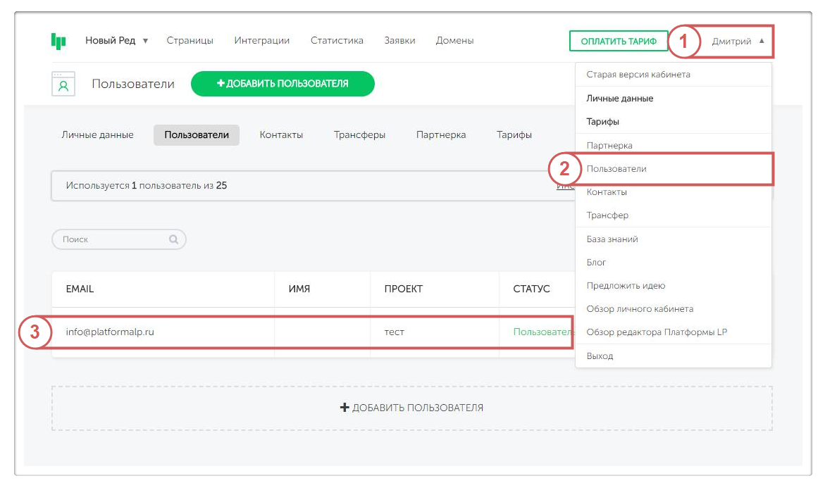 Для добавления нового пользователя нажимаем кнопку «Добавить пользователя».