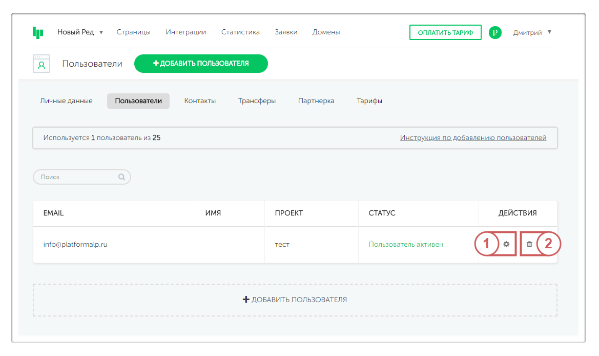 На вкладке «Пользователи» вы можете увидеть всех созданных вами пользователей: