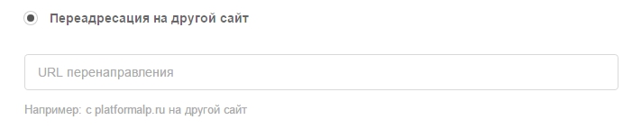 При выборе которого появится окно для ввода URL сайта на которое будет совершена переадресация