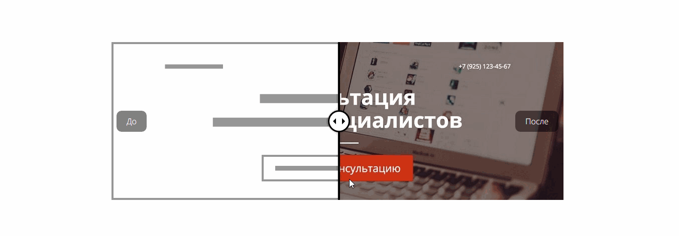 Виджет «Картинка До и После» работает в том числе и на смартфонах. Размер изображения меняется в зависимости от ширины устройства;