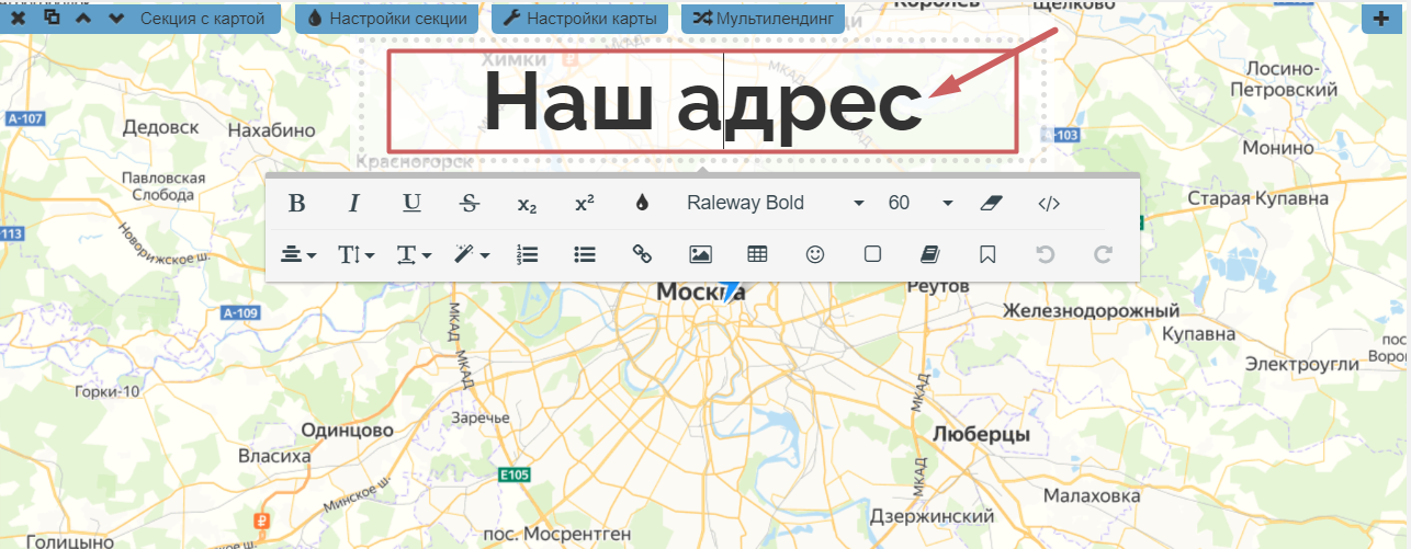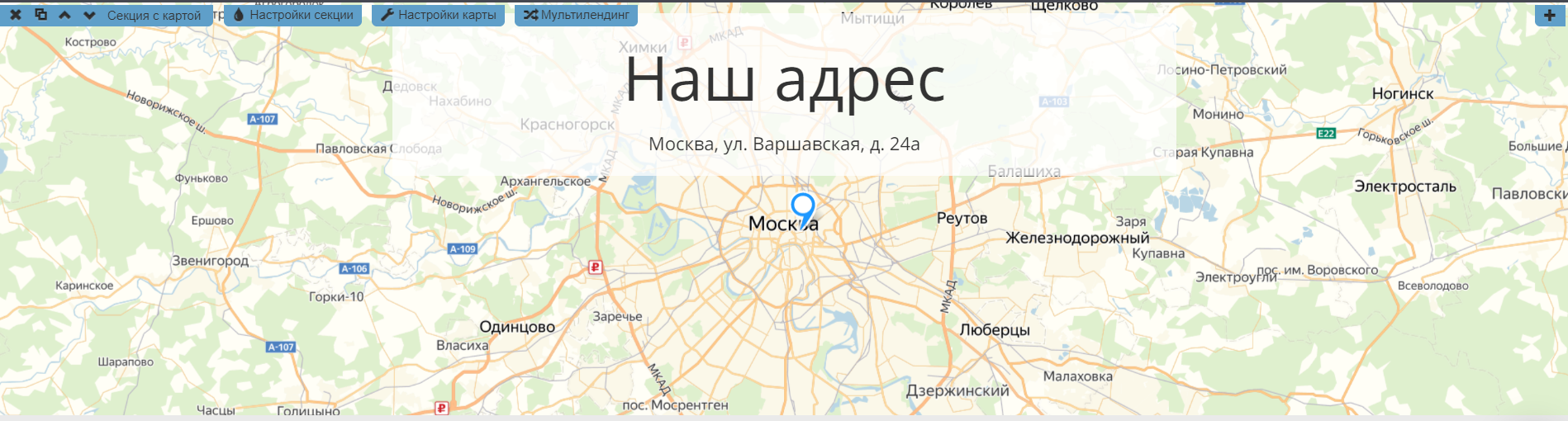 Если добавить данную секцию с картой, то настройки самой карты будут такими же, как у виджета. В разделе «Виджет Карта » мы подробно разберем настройки карты.