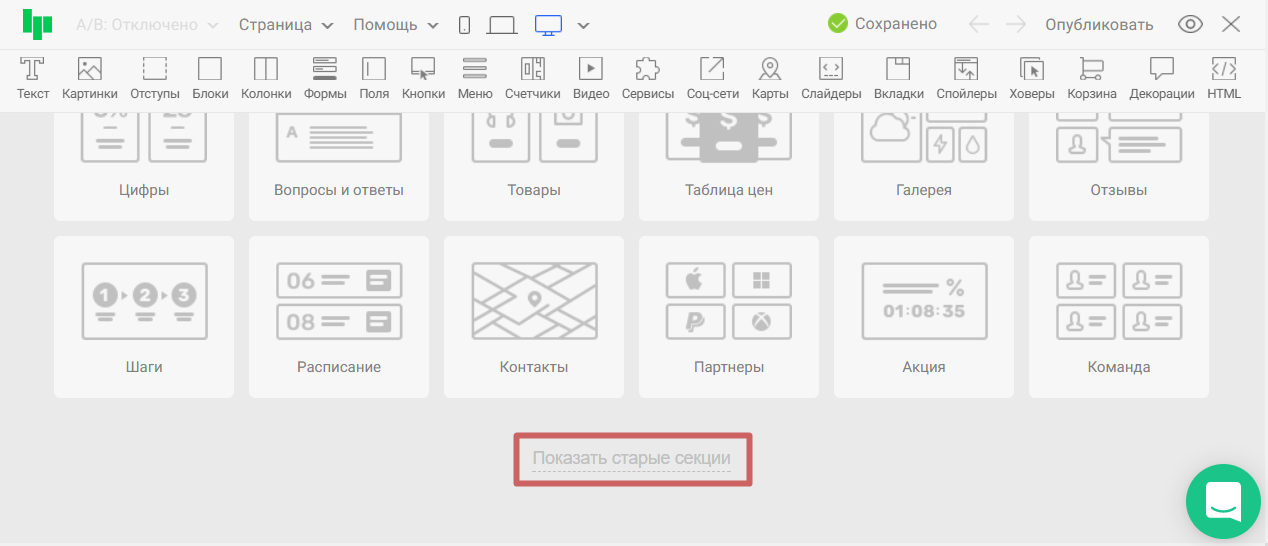 Перейдите в старые секции, нажав на кнопку «Показать старые секции»