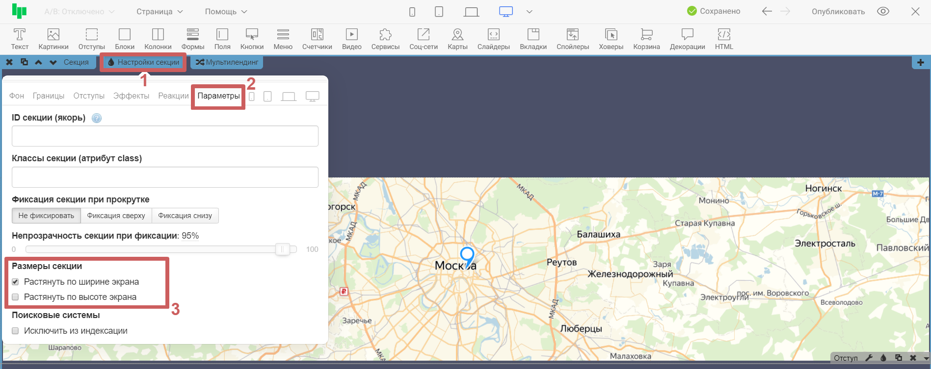 1. Зайдите в настройки секции , в которой находится виджет карты;