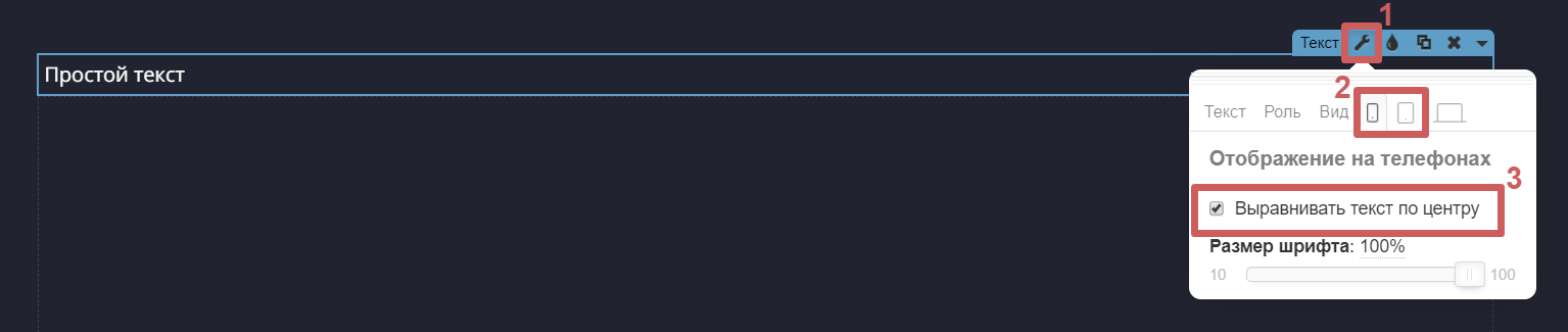 При таких настройках, на мобильных телефонах размер текста у этого виджета будет на 40% меньше, чем на других устройствах. Если мы установим этот ползунок на 100% - размер текста на мобильных будет такой же, как и на других устройствах.